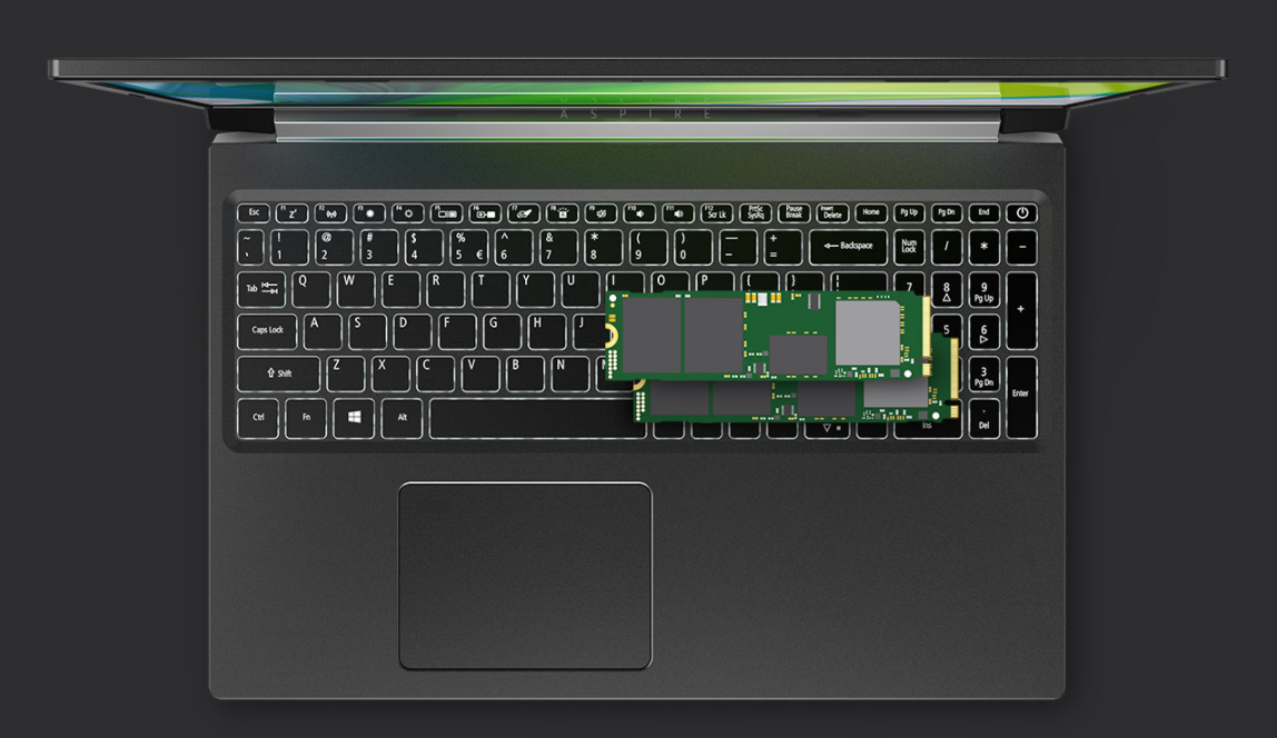 Aspire 7 sở hữu khả năng nâng cấp cực ấn tượng, đảm bảo đủ năng lượng và bộ nhớ để sử dụng lâu dài:+ 2 khe cắm RAM chuẩn DDR4: nâng cấp tối đa 32GB 3200Mhz (máy trang bị mặc định 1 thanh Ram 8GB)+ 1 khe cắm ổ cứng SSD: nâng cấp tối đa 1TB SSD NVMe PCIe (đã cắm sẵn 1 thanh ổ cứng 512GB SSD).